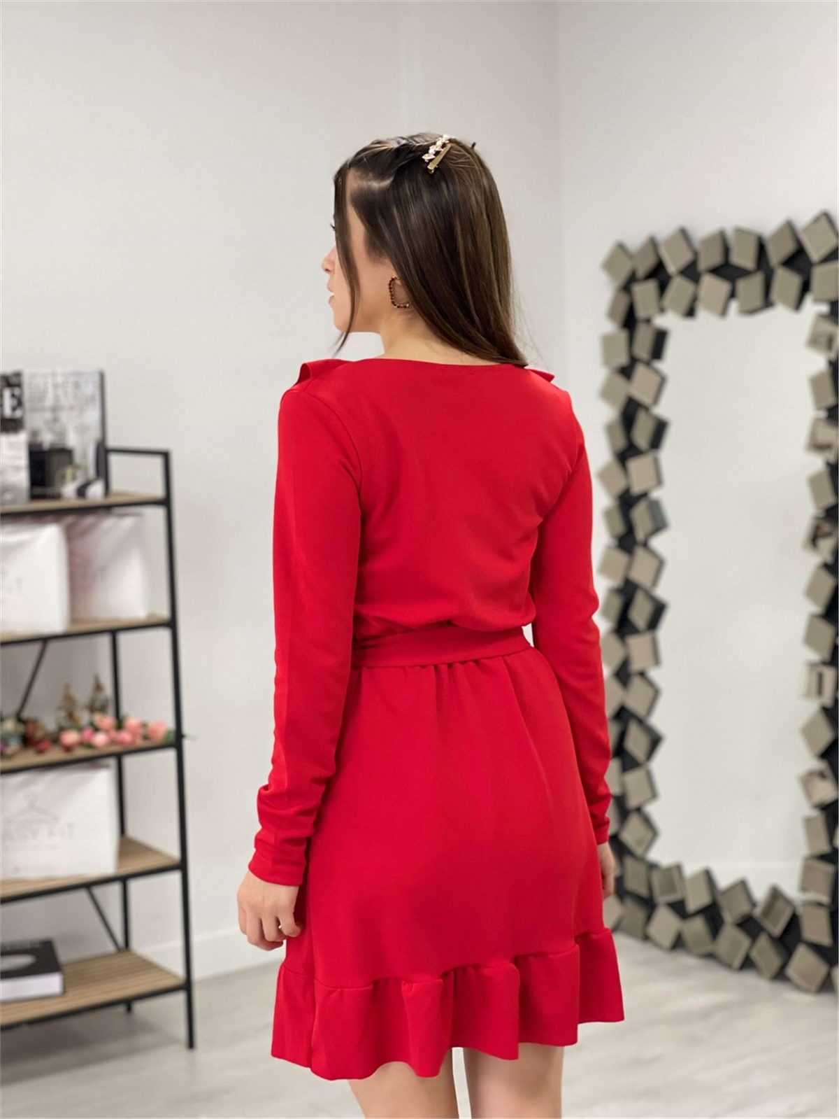 فستان قصير مكشكش من قماش الكريب - أحمر (GYM-0203)