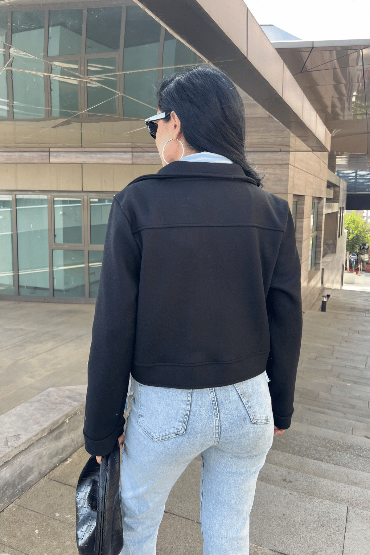 Crop Kaşe Ceket - SİYAH (GYM-2067-1-SİYAH)