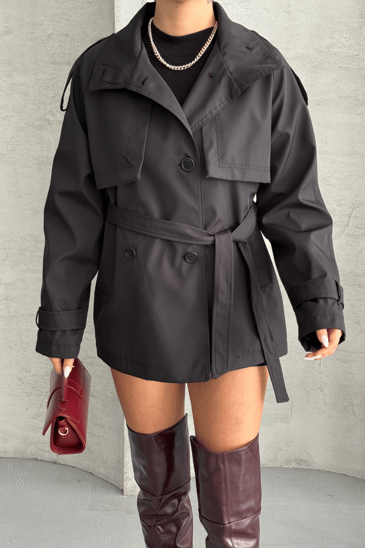 Bondit Kumaş Kısa Trençkot - ANTRASİT