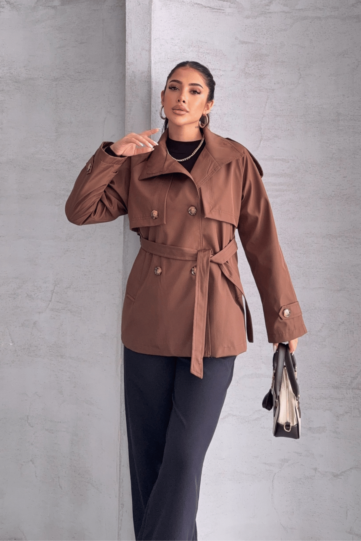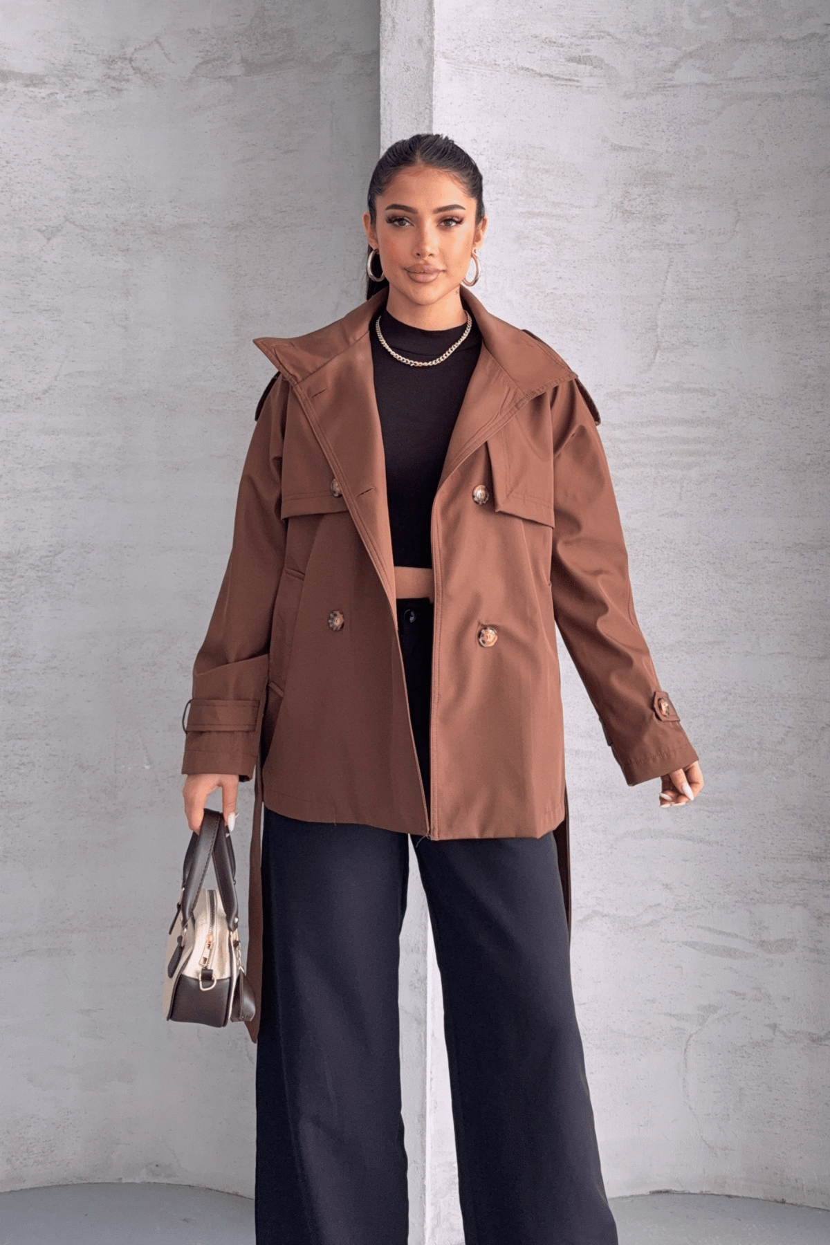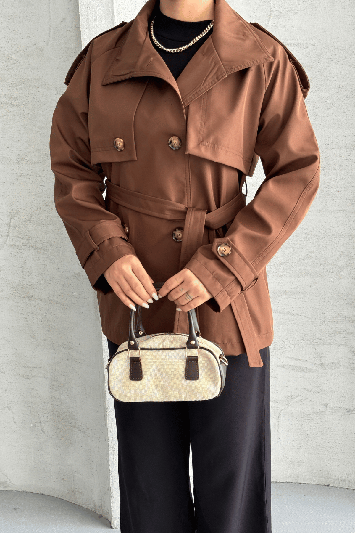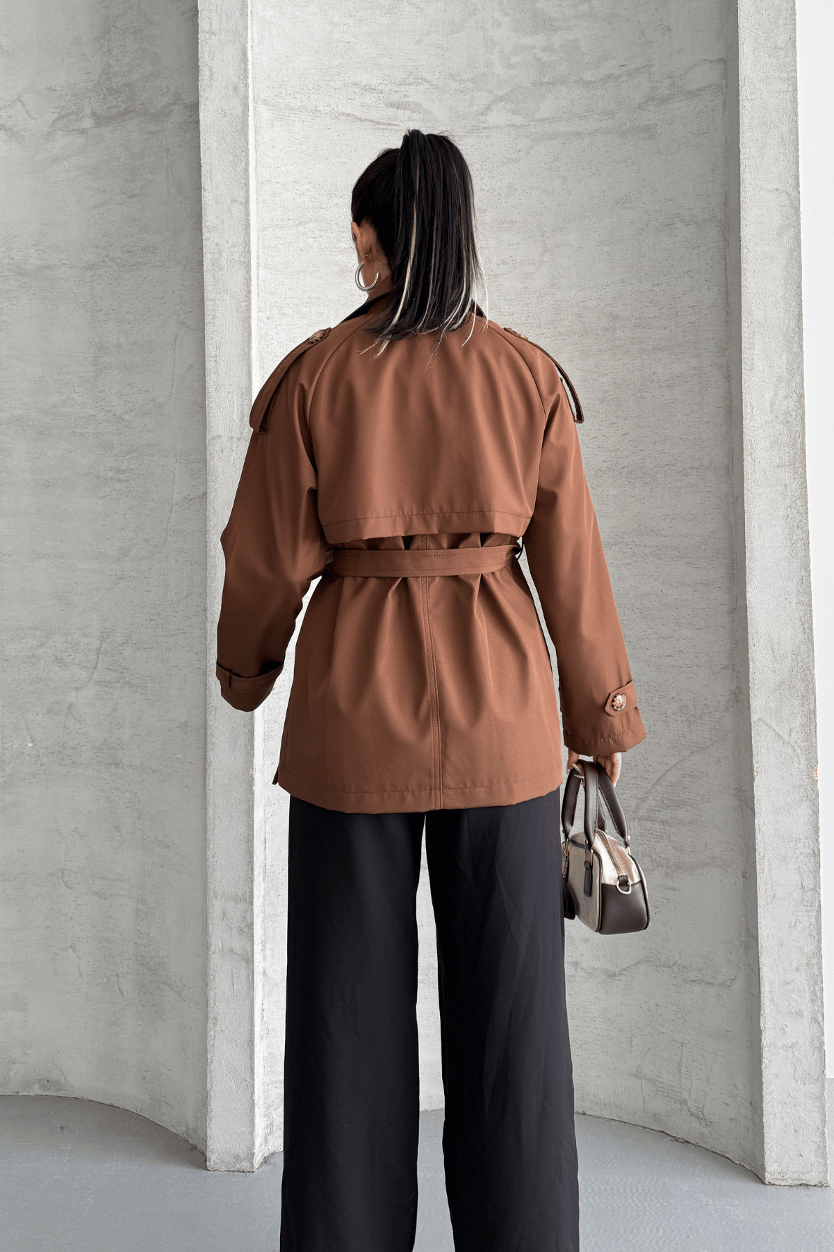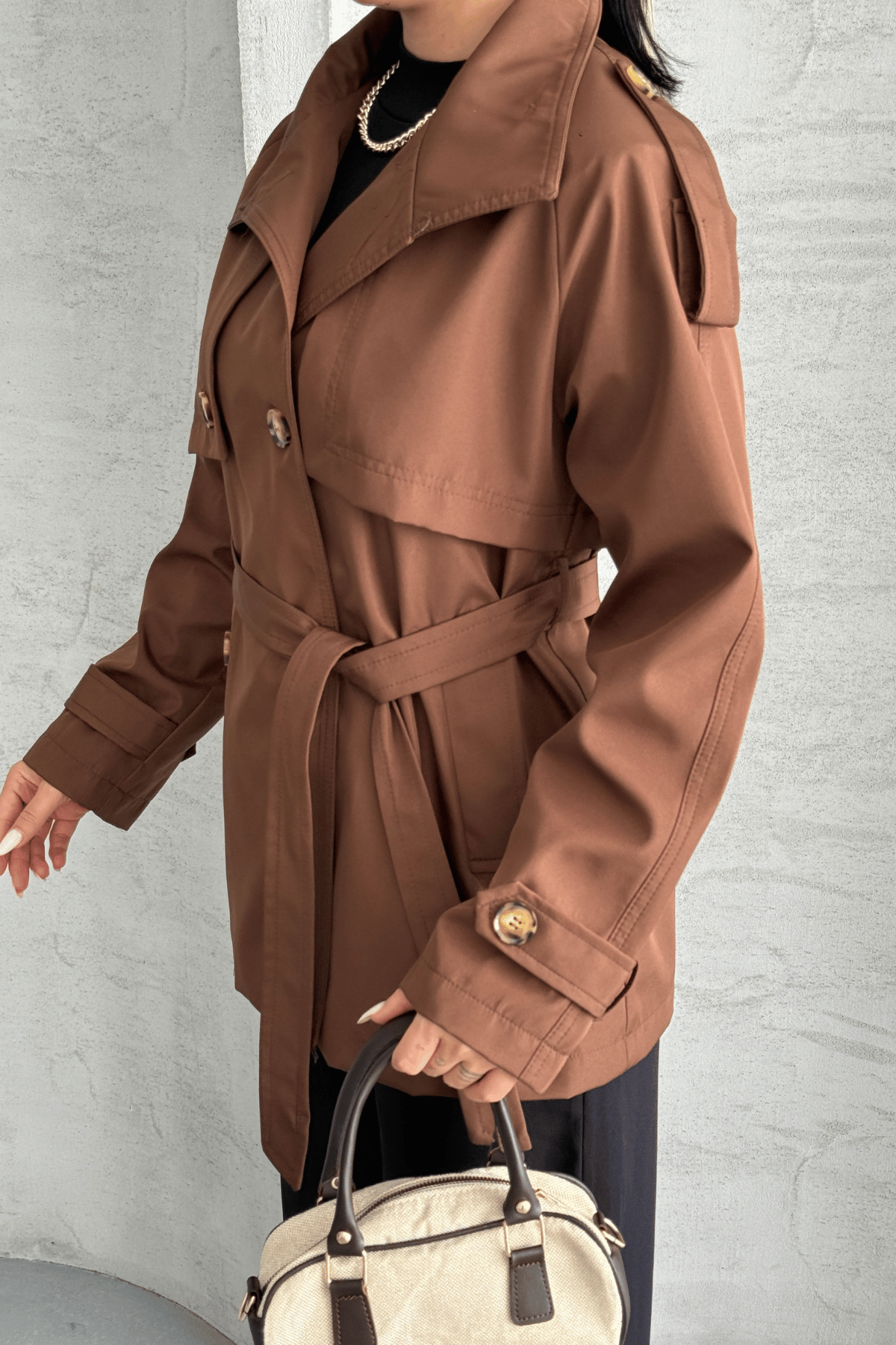 Bondit Kumaş Kısa Trençkot - TABA (GYM-2096-TABA)