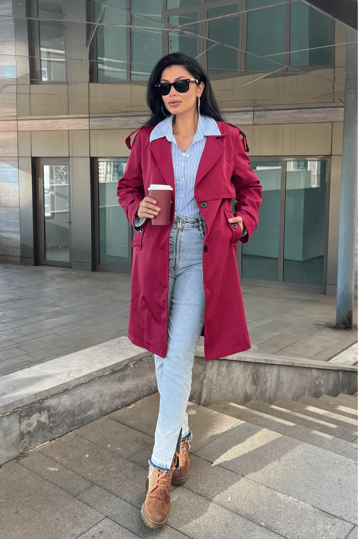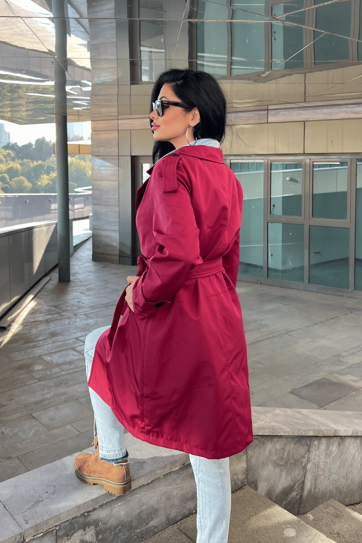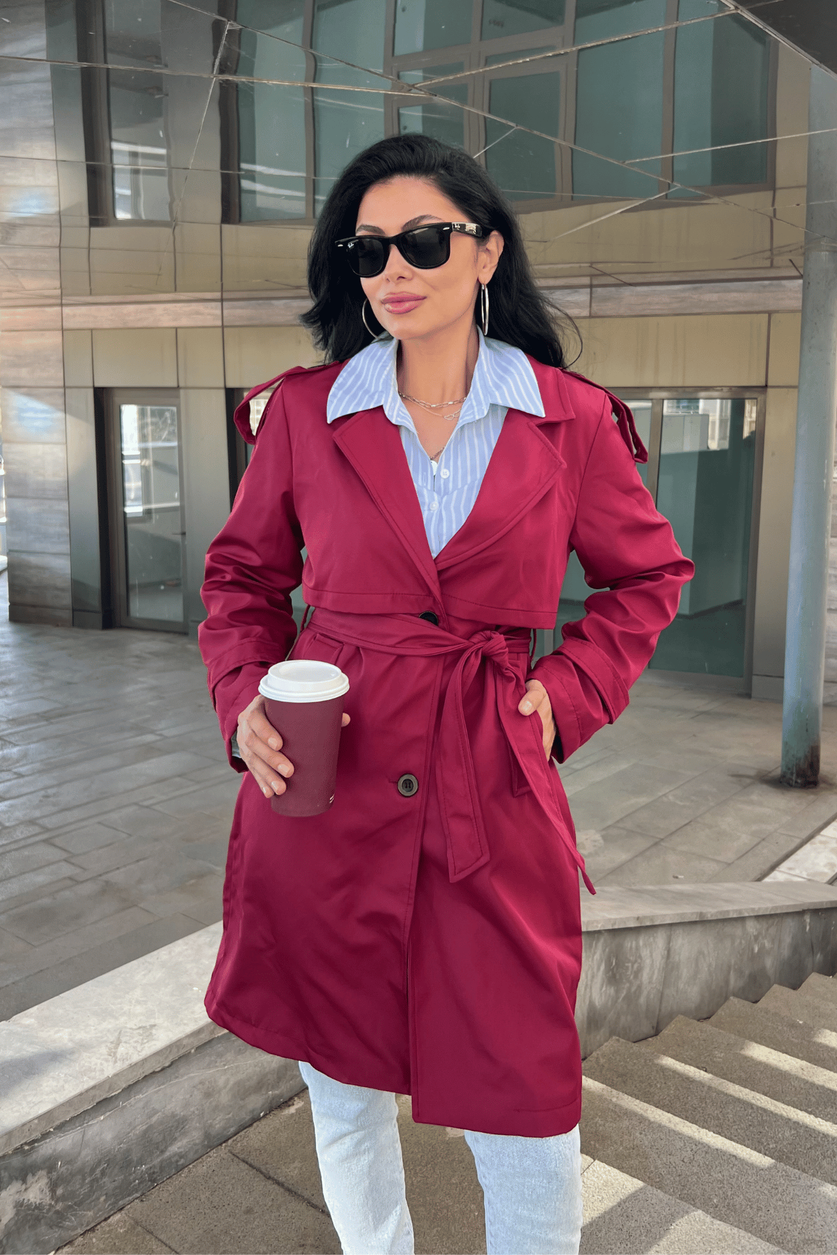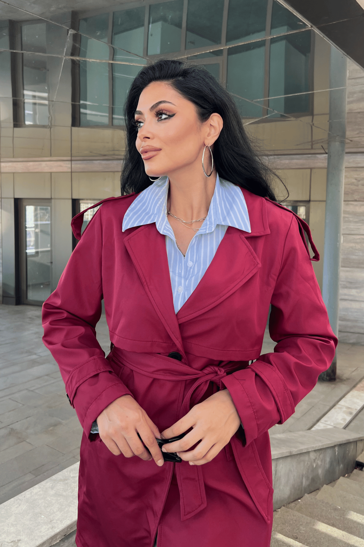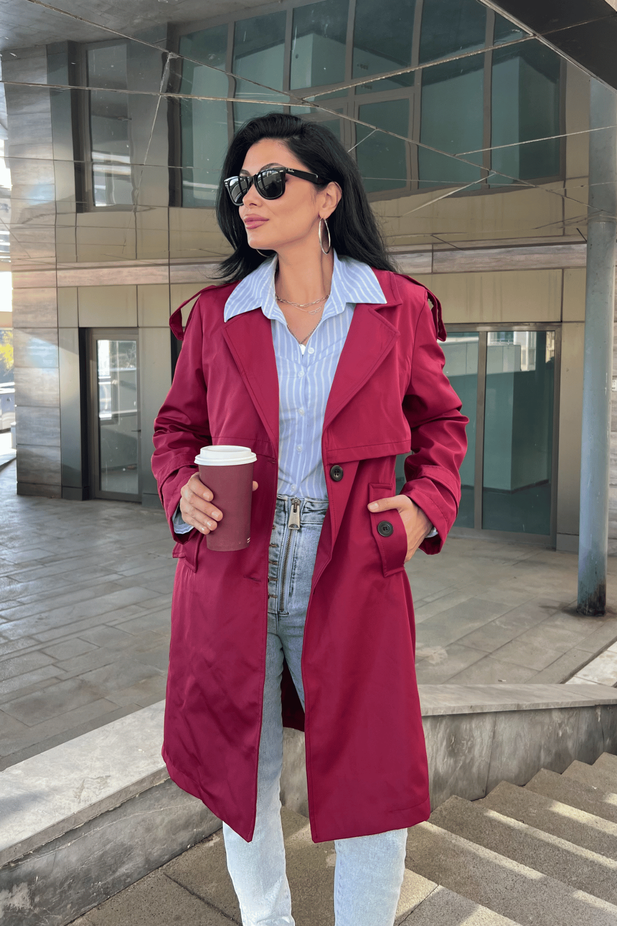 Bondit Kumaş Tasarım Trençkot - BORDO