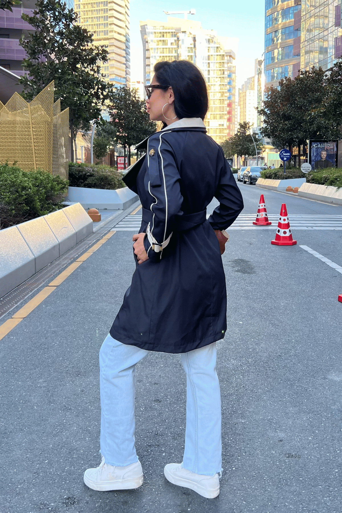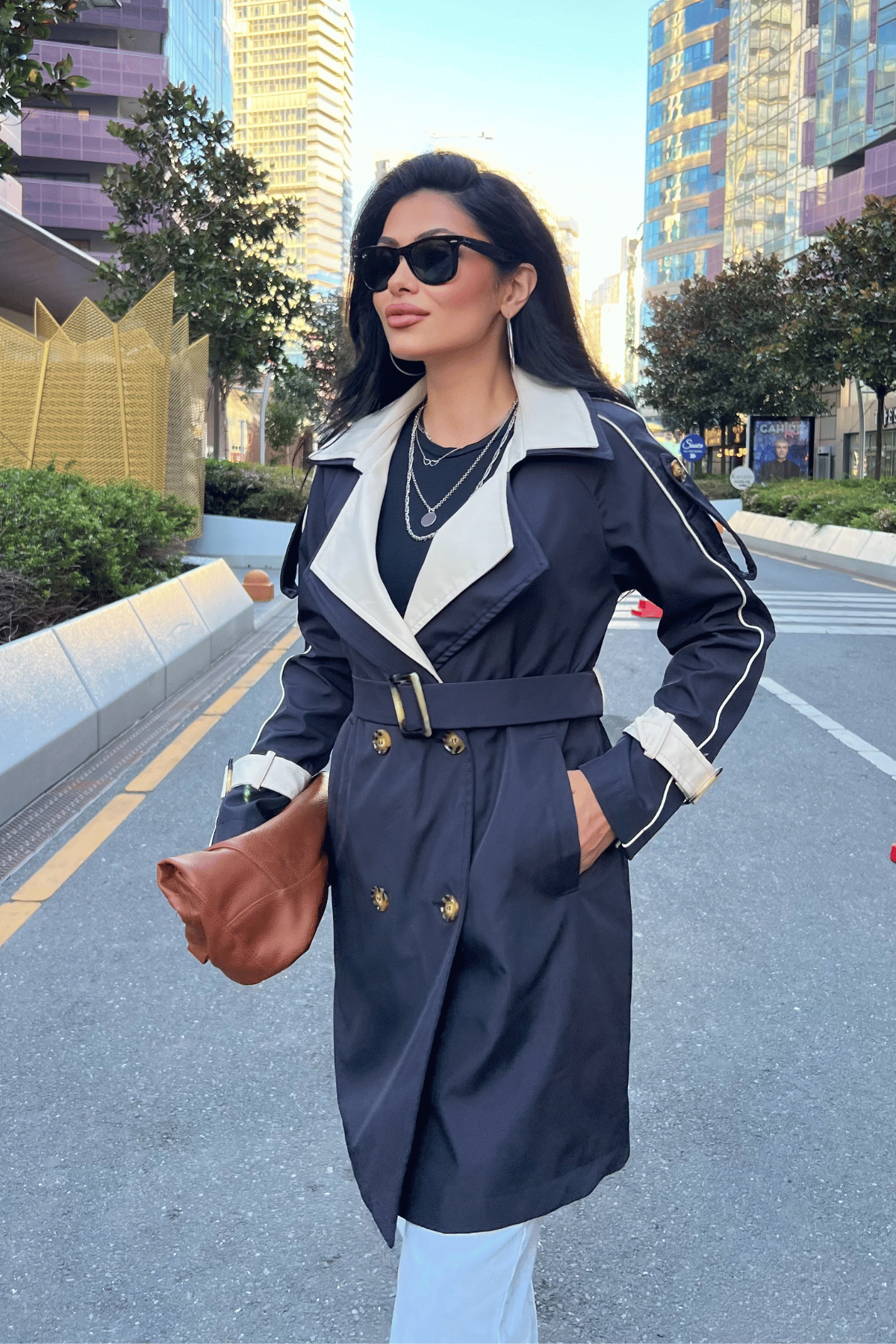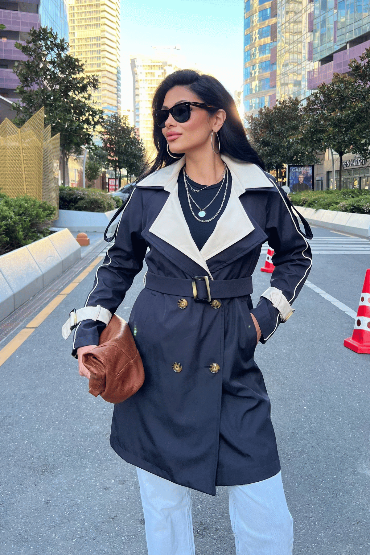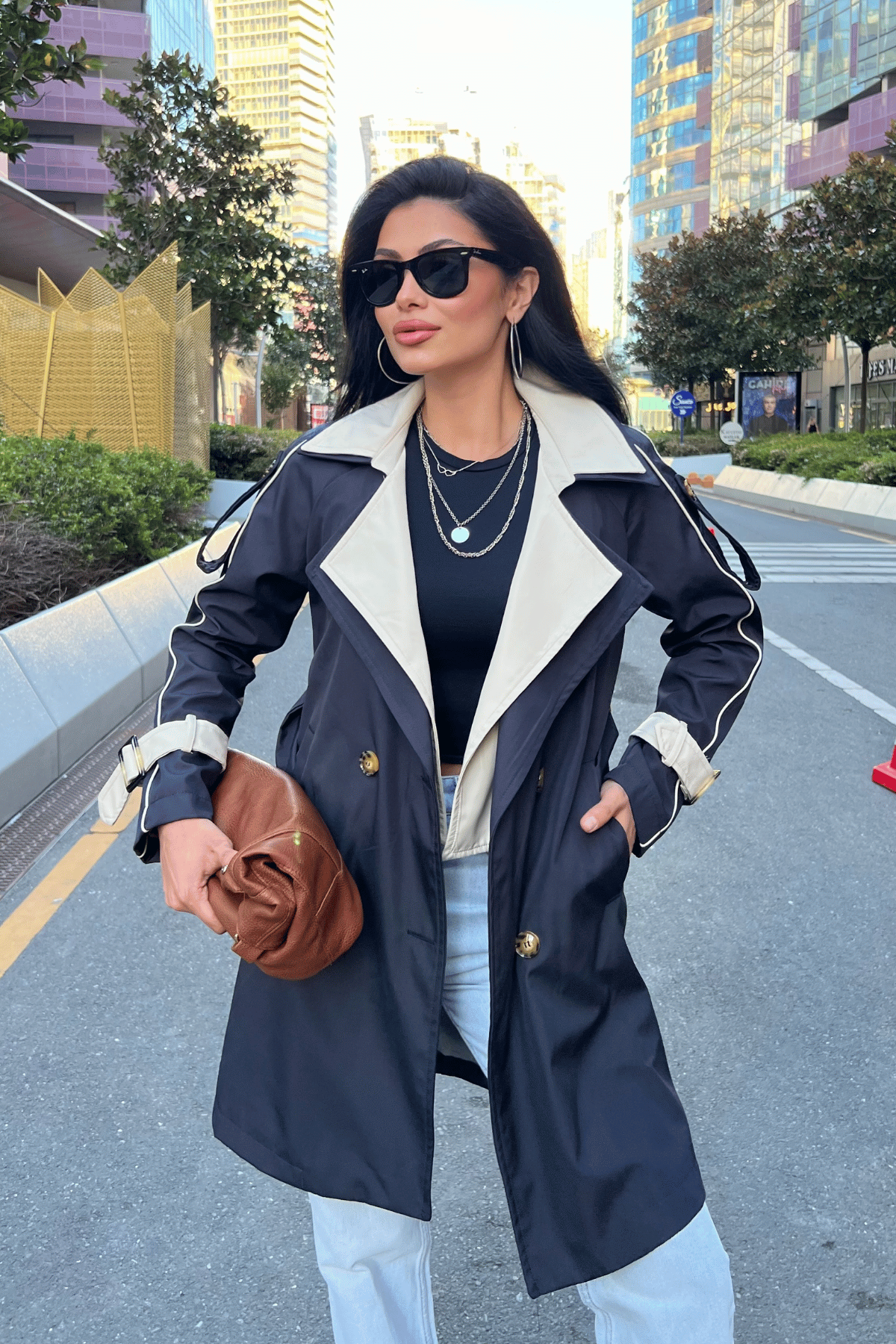 Bondit Kumaş Tasarım Trençkot - LACİVERT