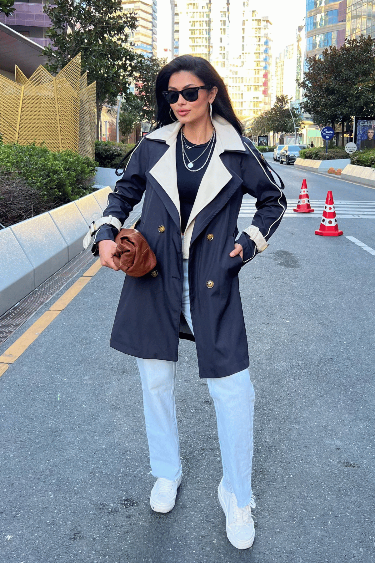 Bondit Kumaş Tasarım Trençkot - LACİVERT (GYM-2060-LACİVERT)