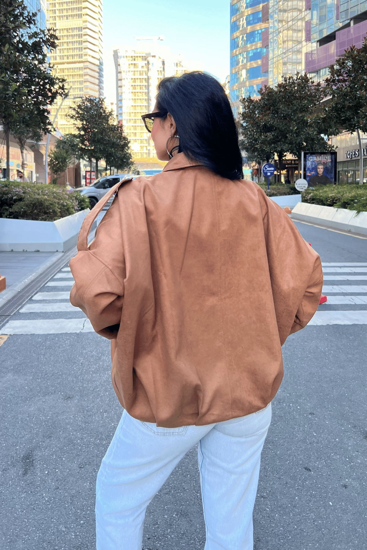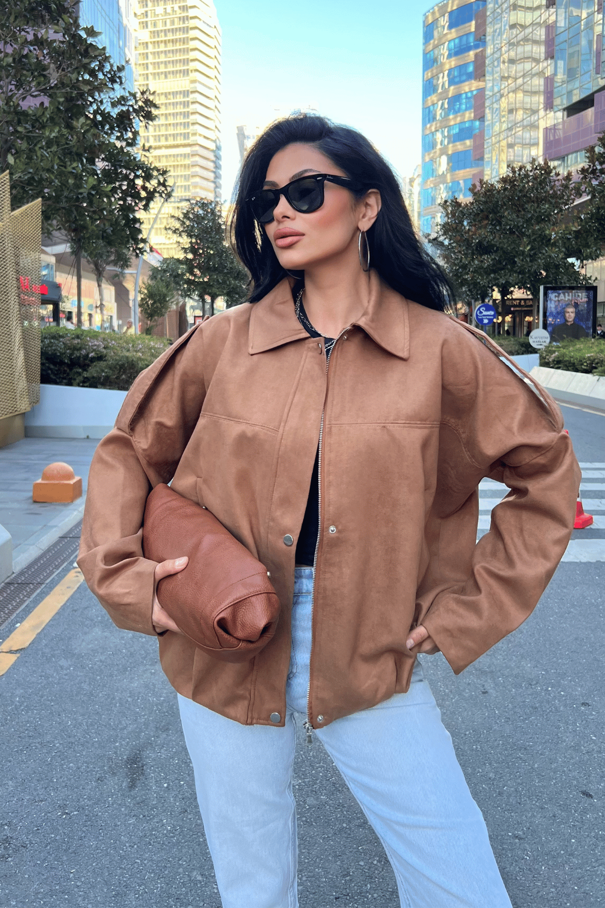 Dokuma Süet Kumaş Apoletli Bomber Ceket - AÇIK KAHVE