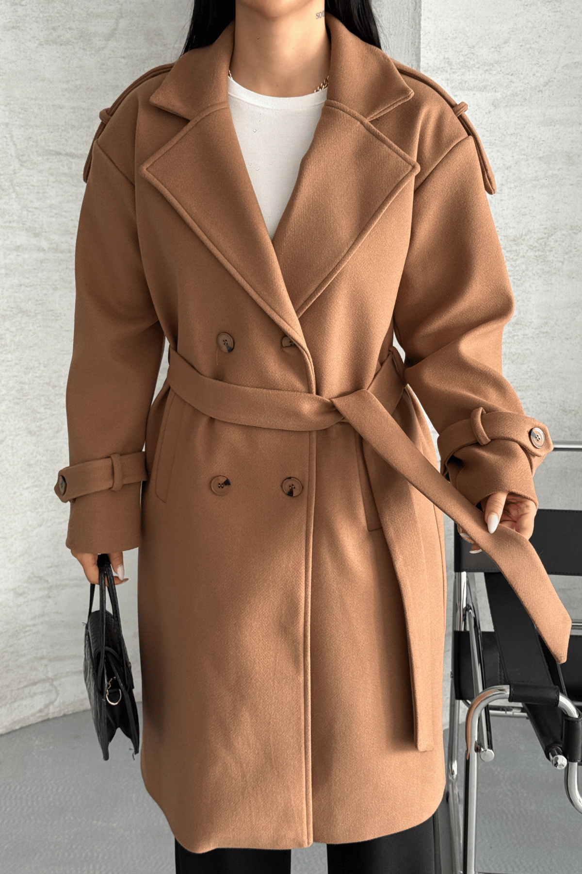 İthal Kaşe Kumaş Uzun Kaban - AÇIK KAHVE (GYM-2523-AÇIK KAHVE)