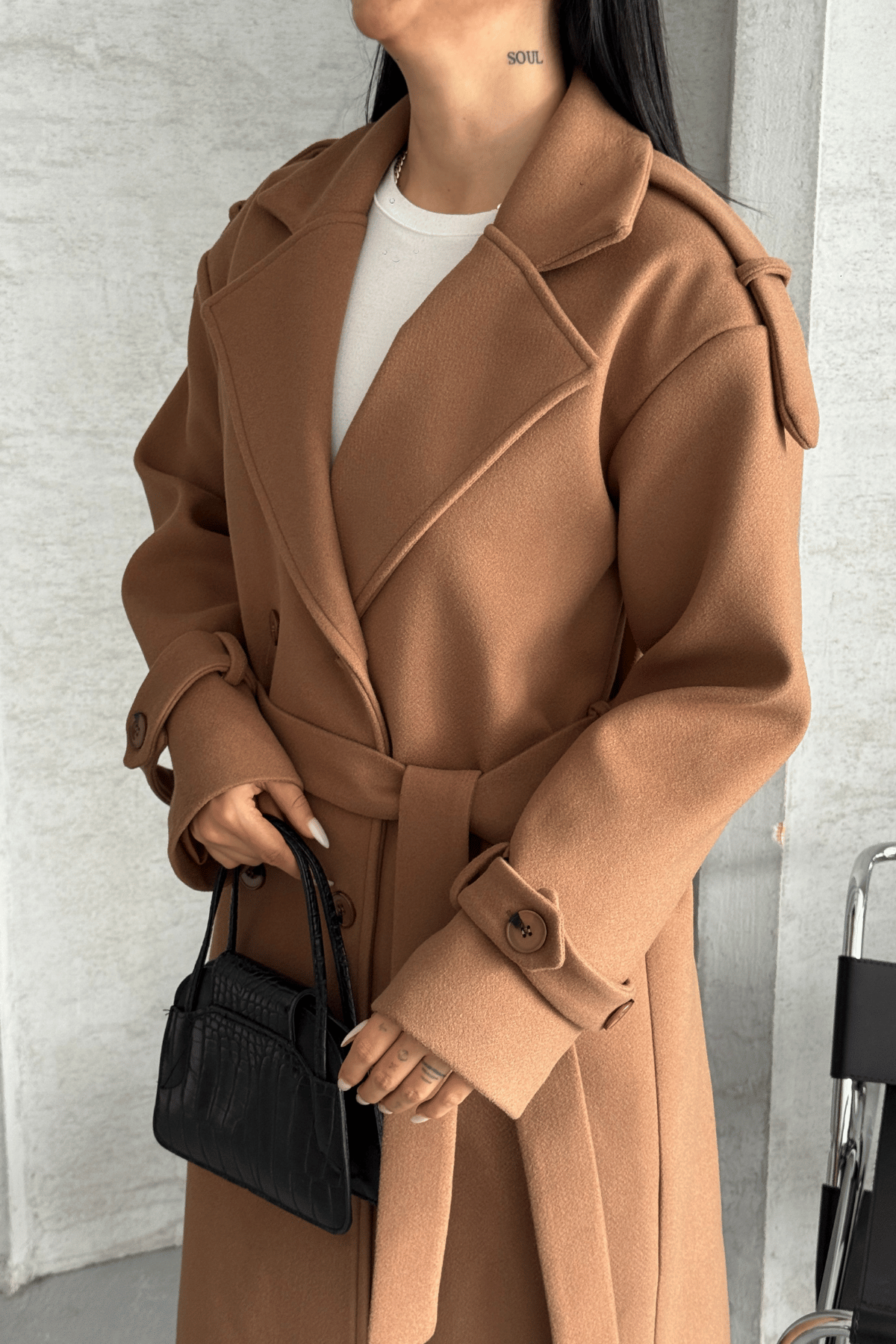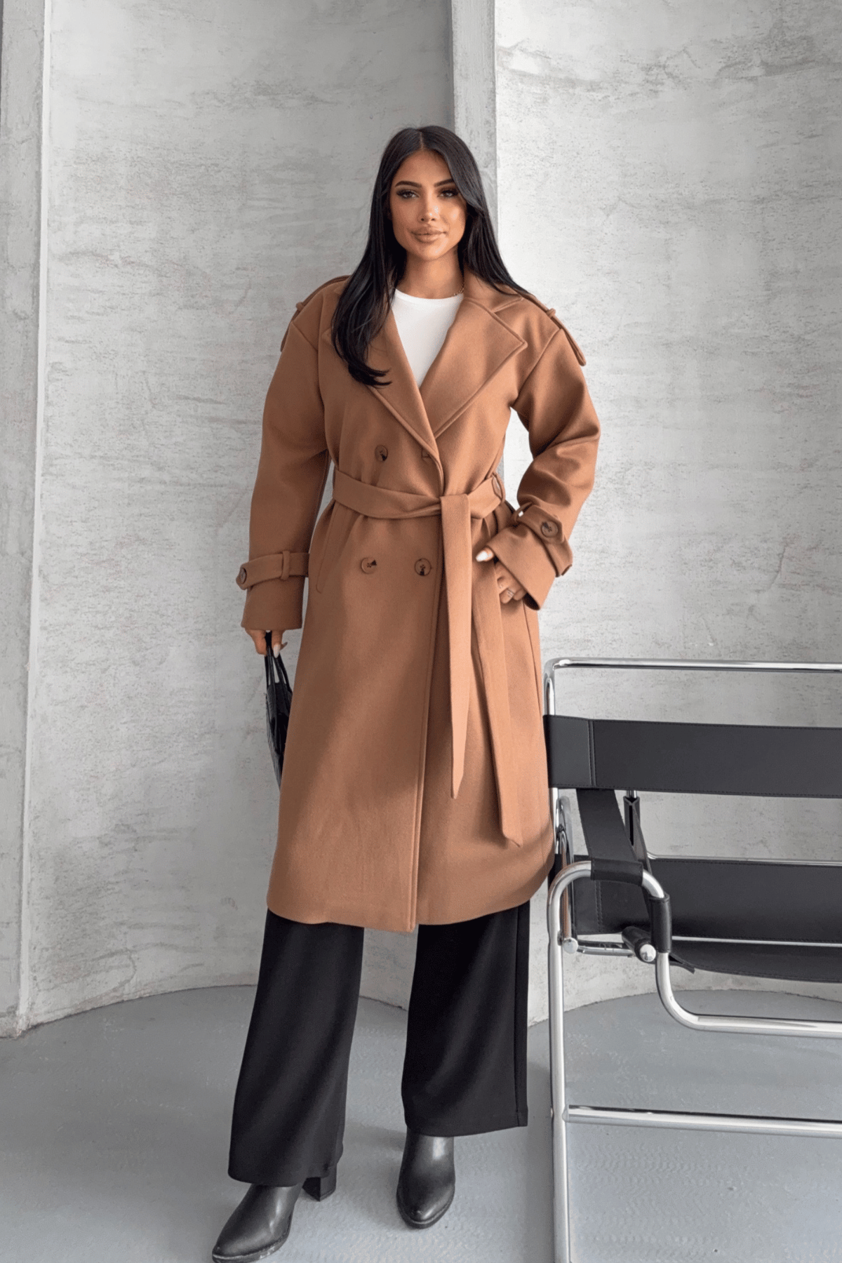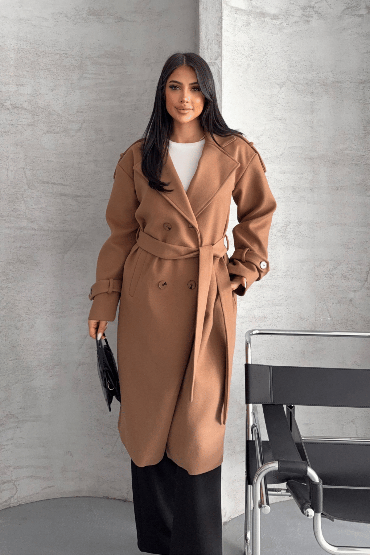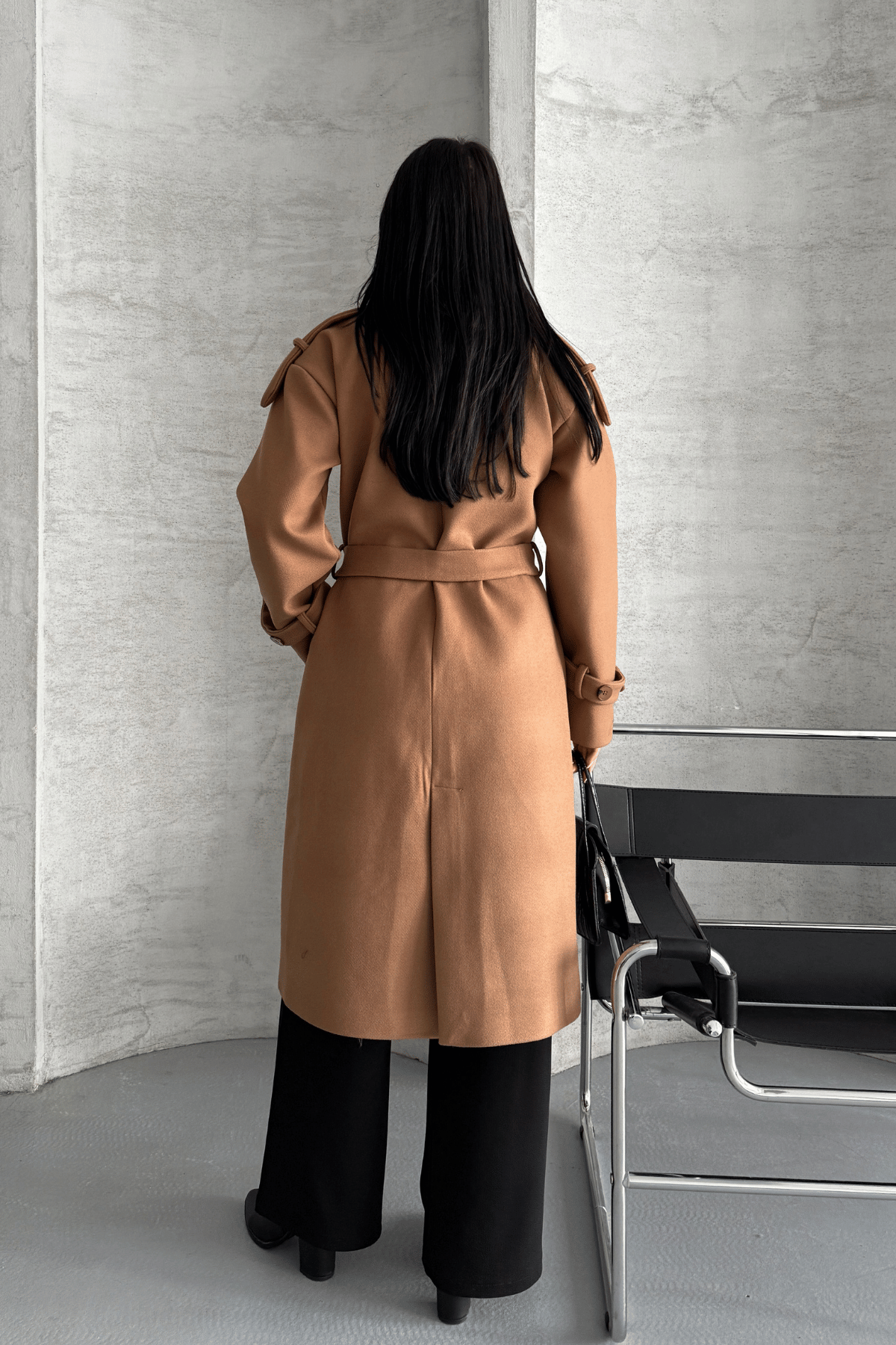 İthal Kaşe Kumaş Uzun Kaban - AÇIK KAHVE