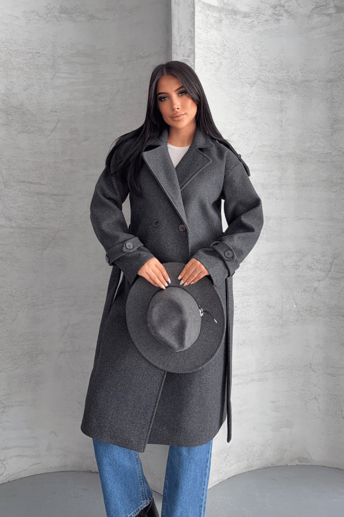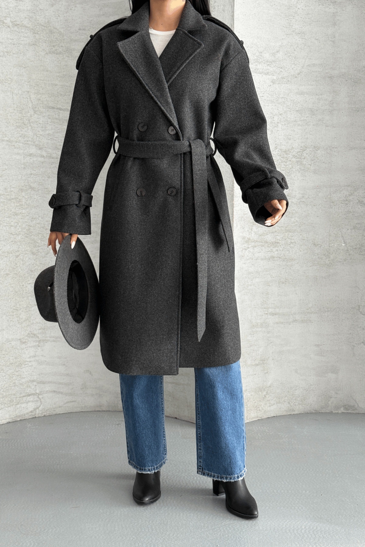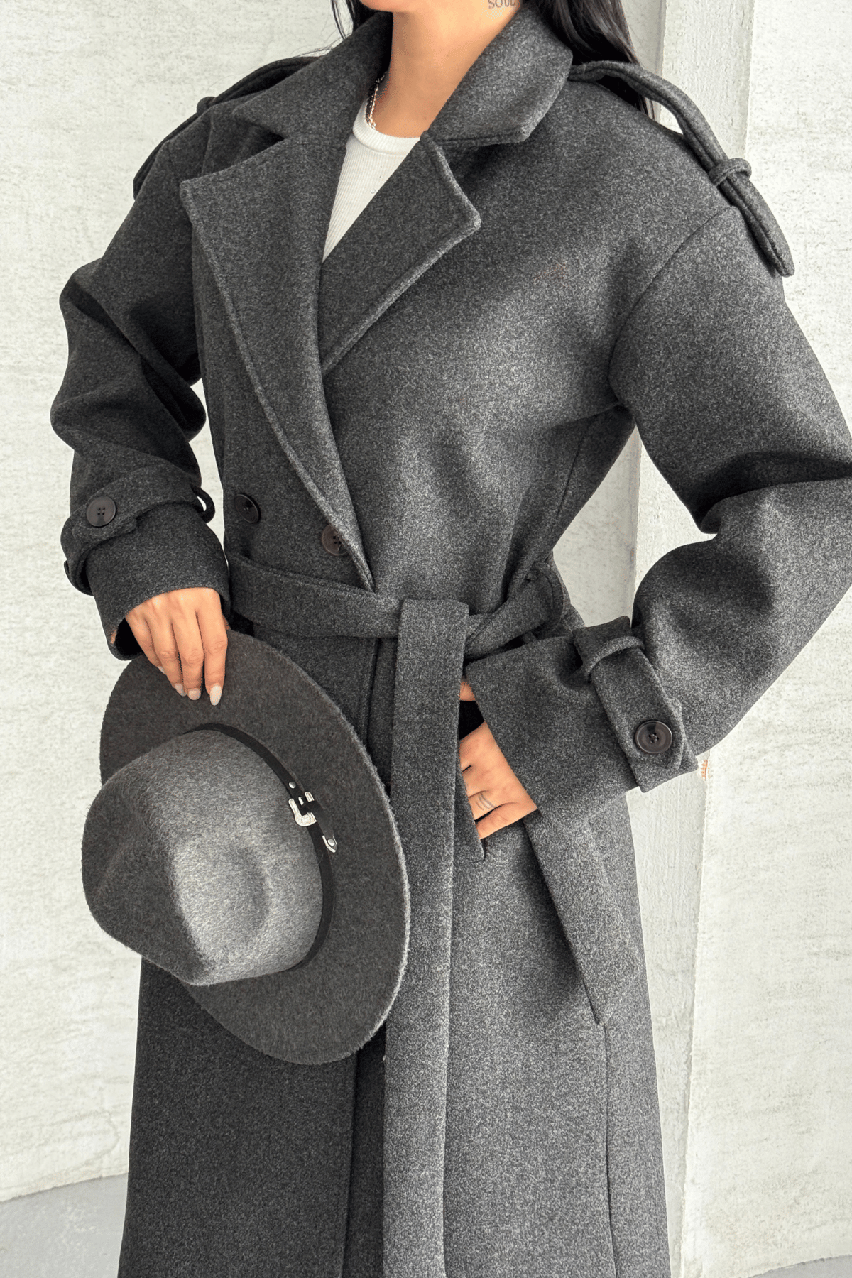 İthal Kaşe Kumaş Uzun Kaban - ANTRASİT (GYM-2523-ANTRASİT)