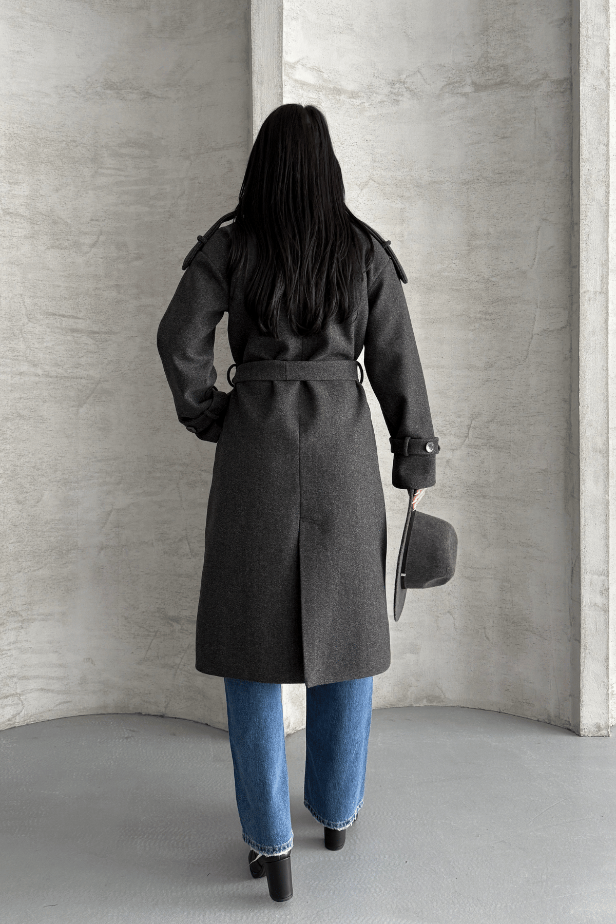 İthal Kaşe Kumaş Uzun Kaban - ANTRASİT