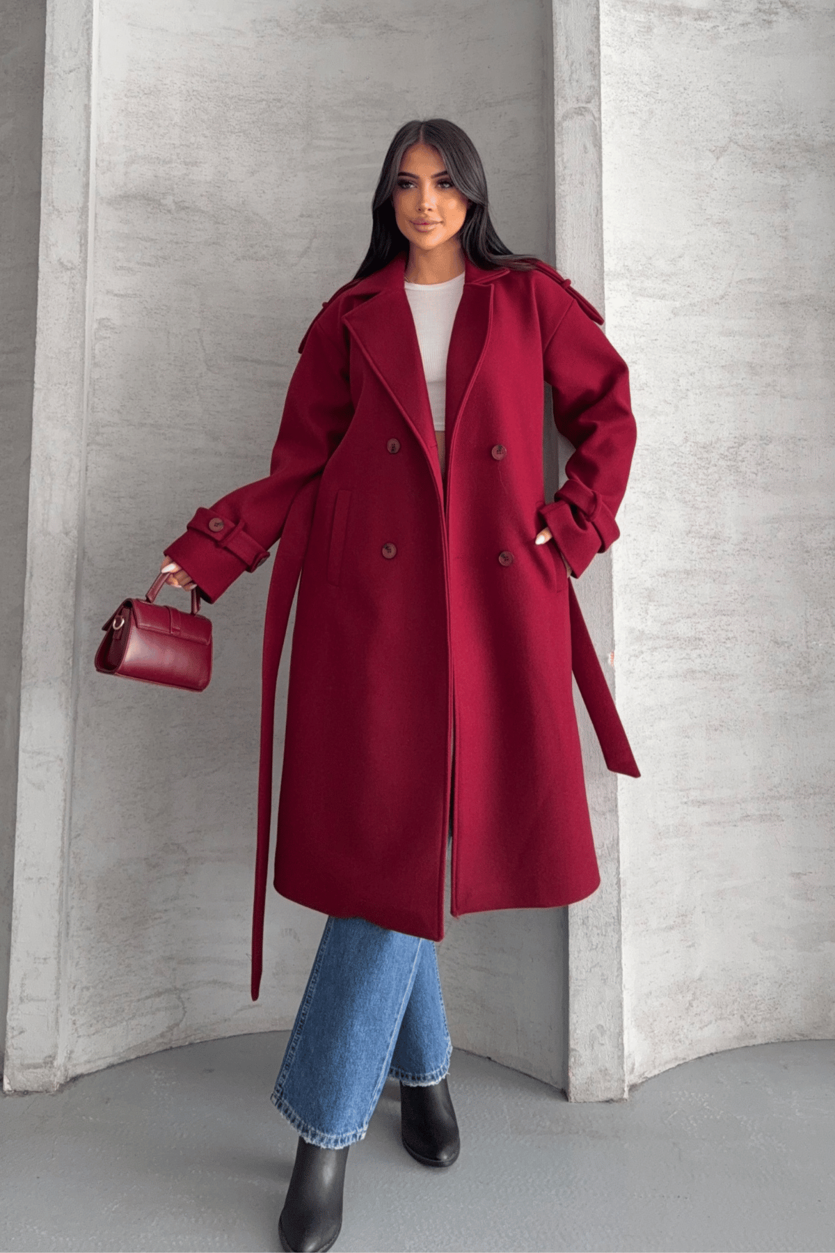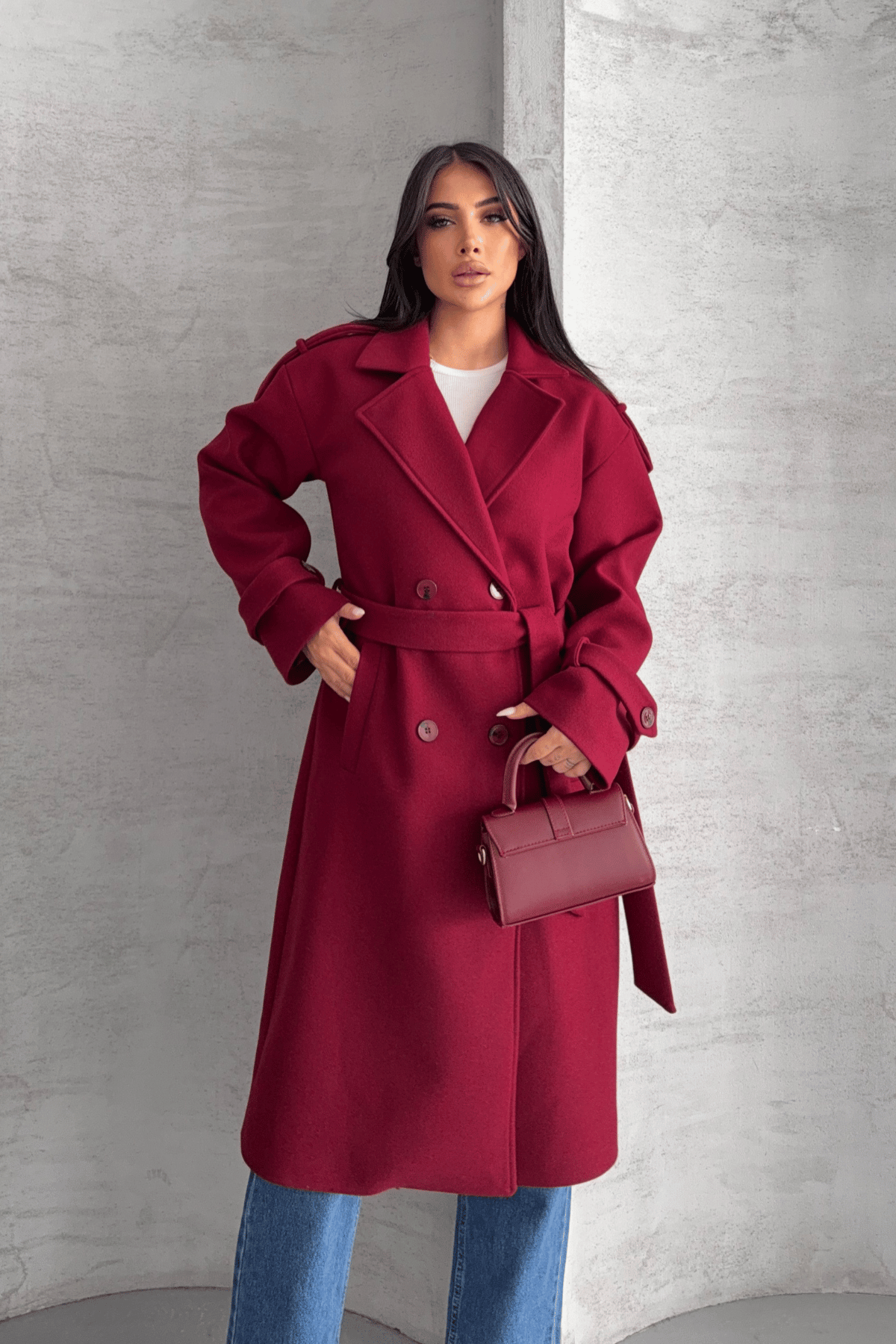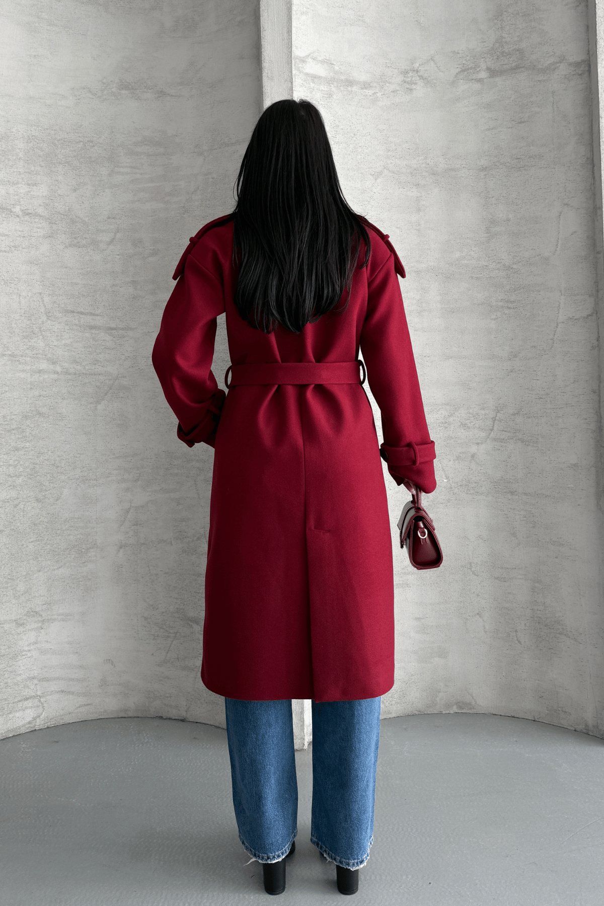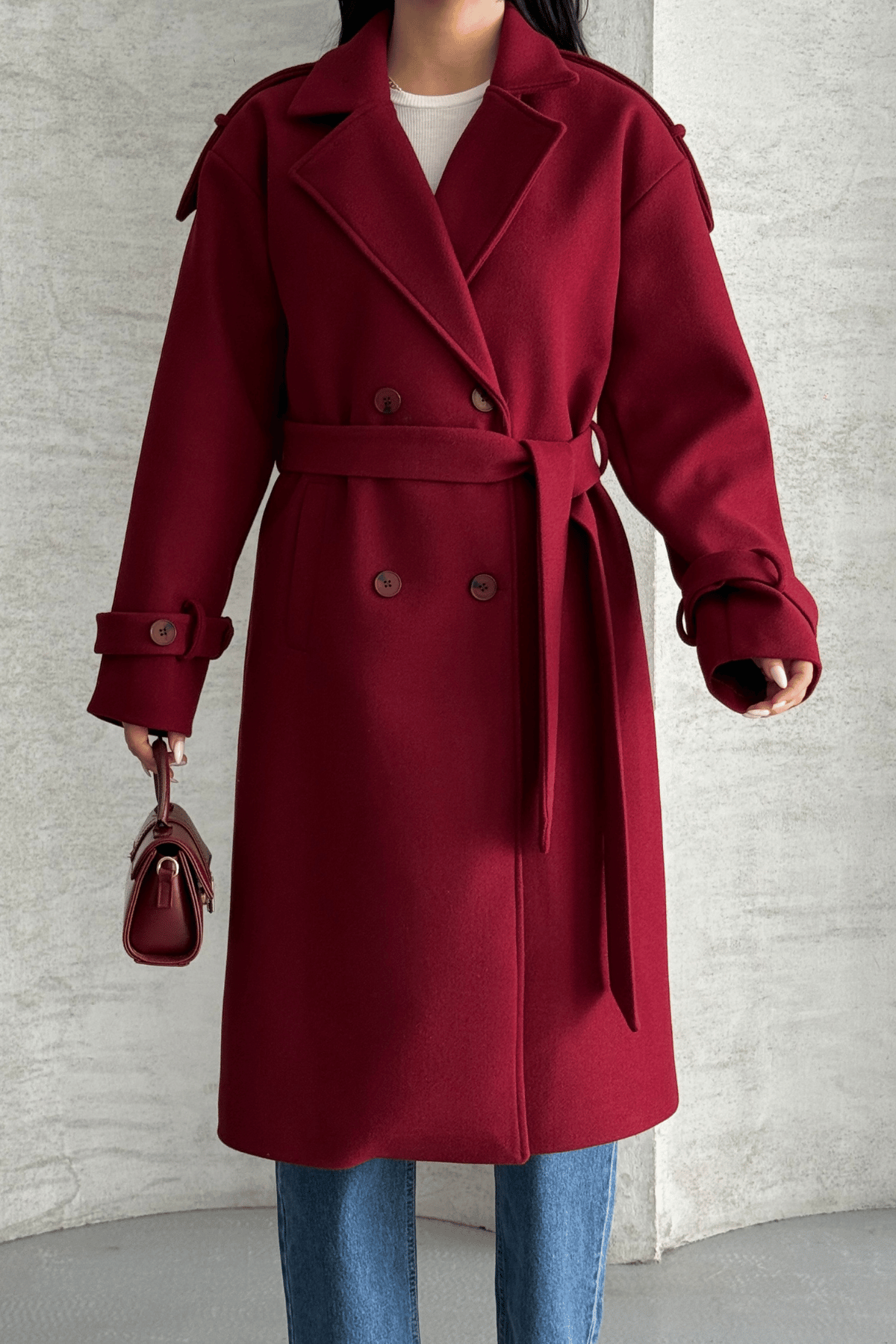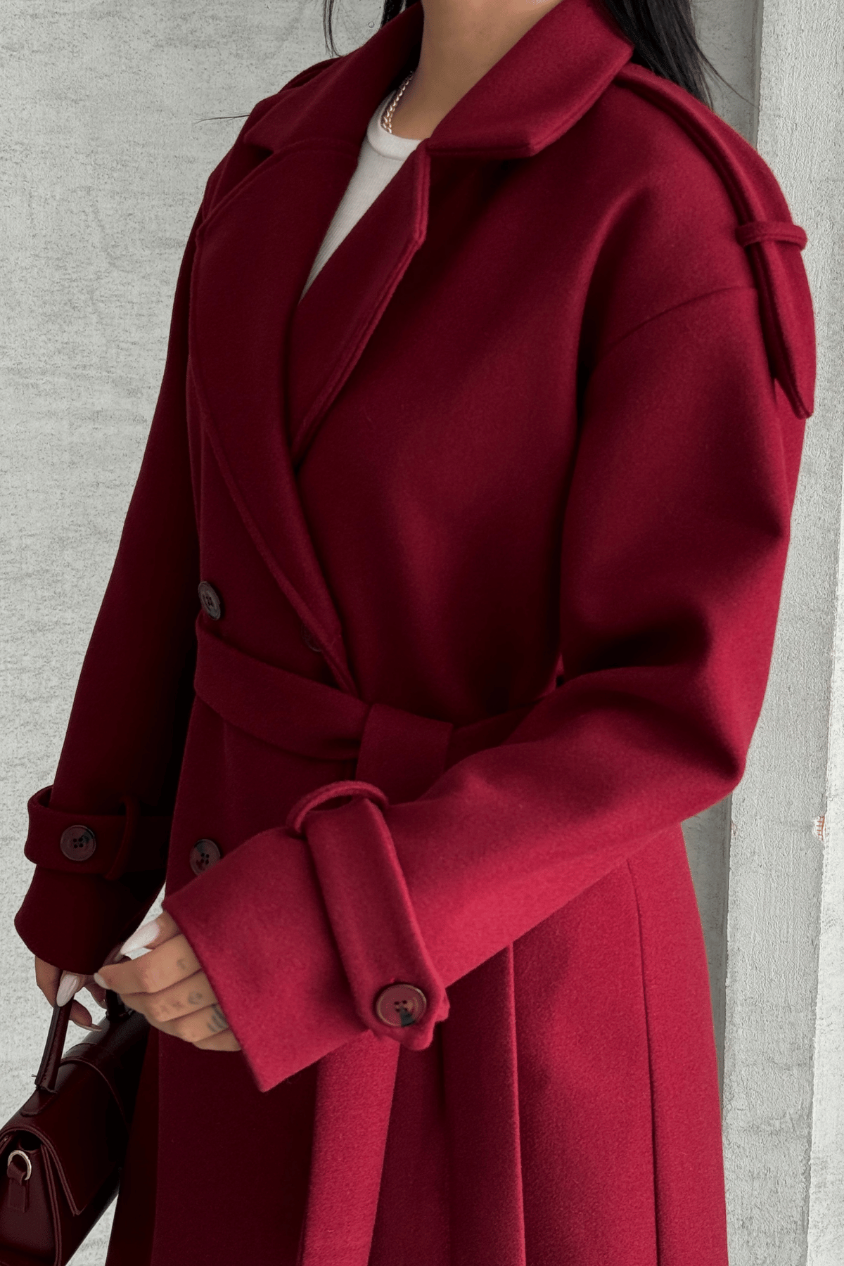 İthal Kaşe Kumaş Uzun Kaban - BORDO