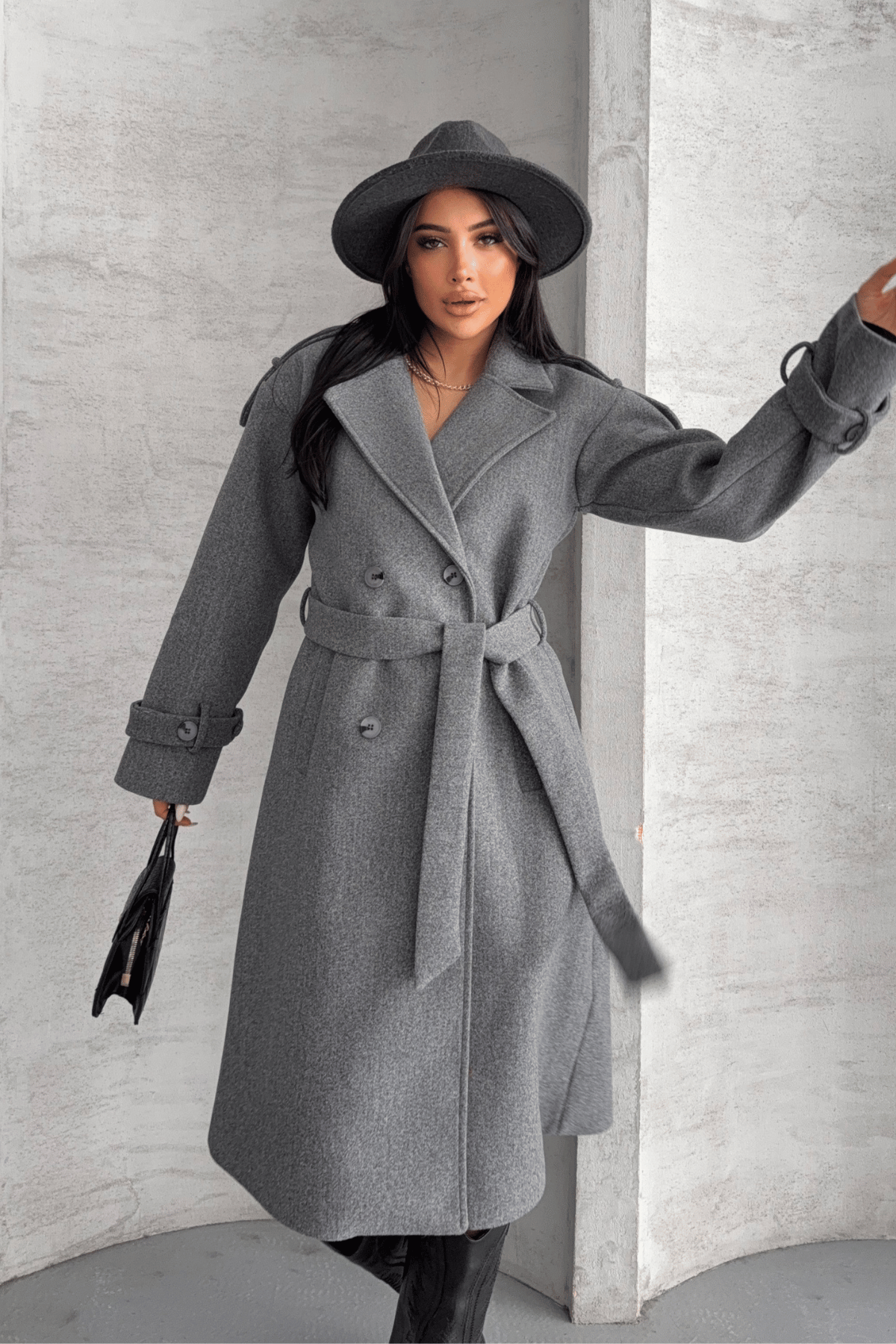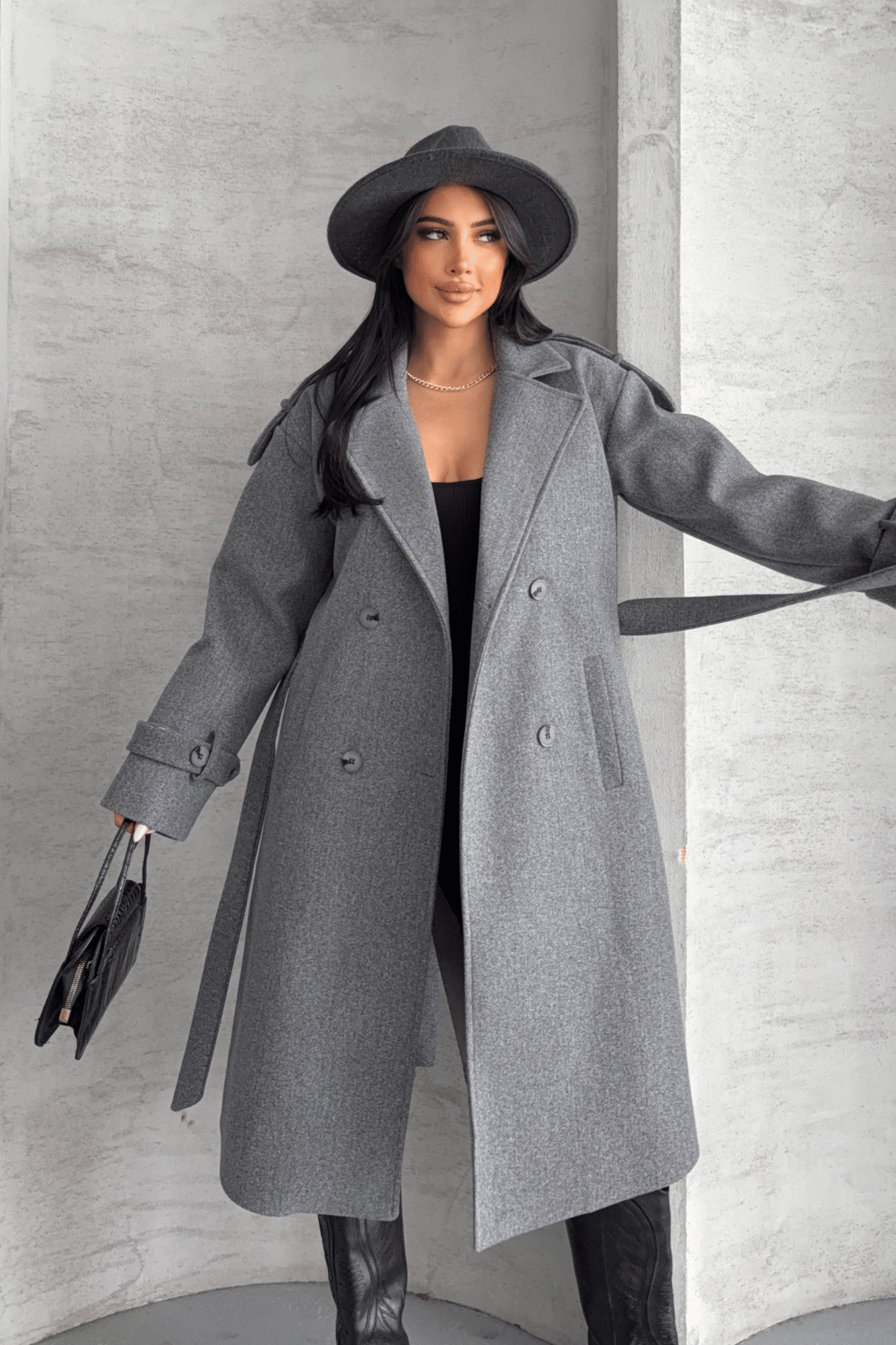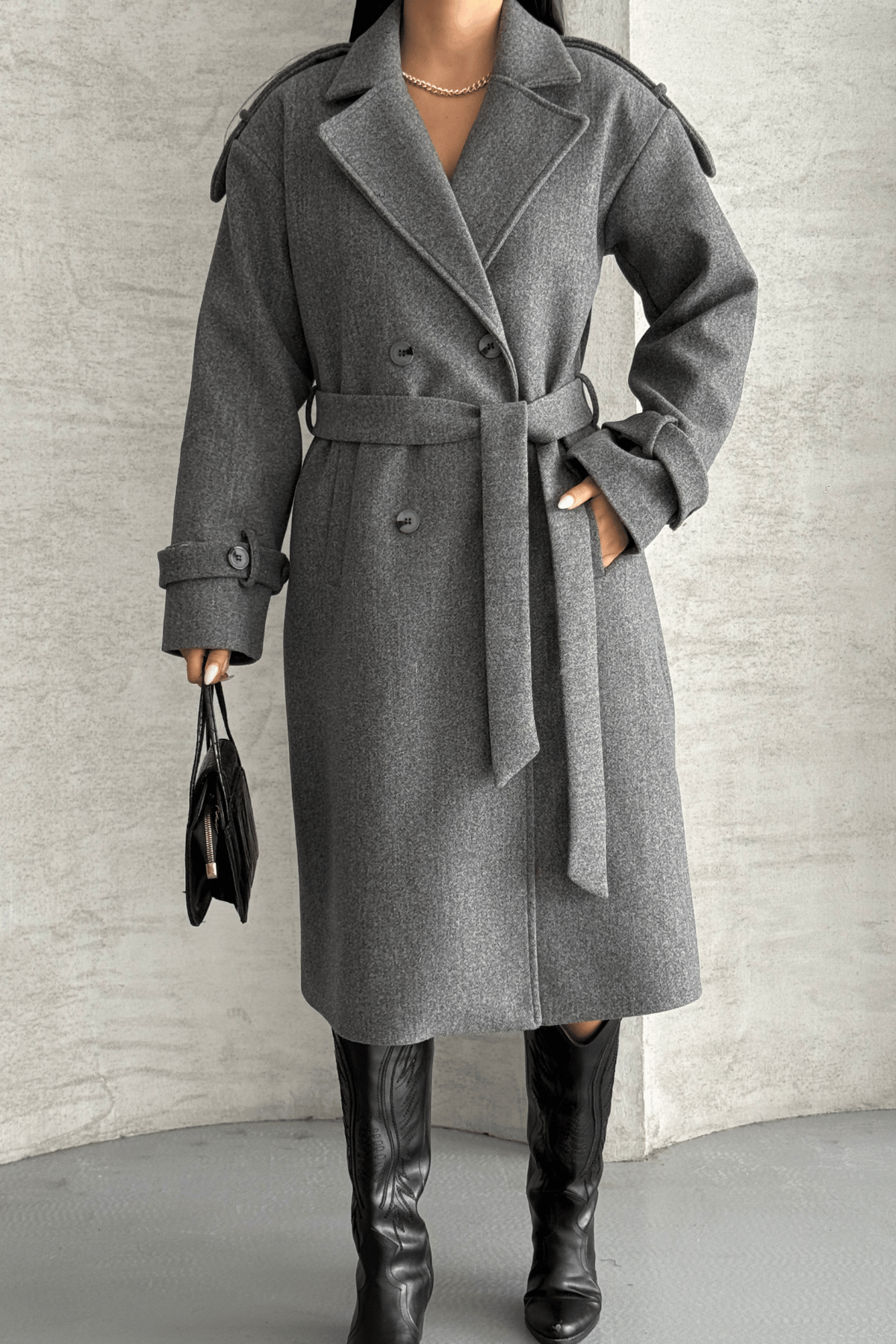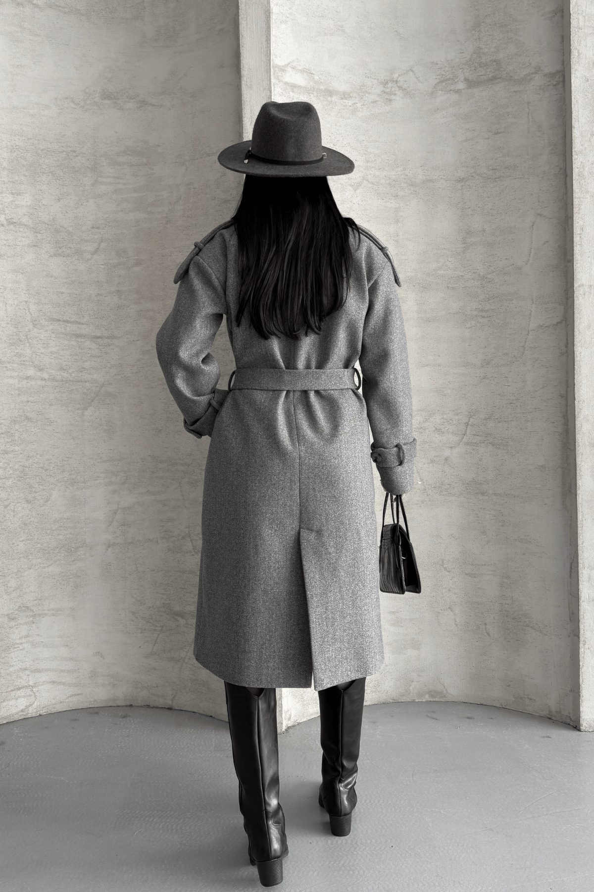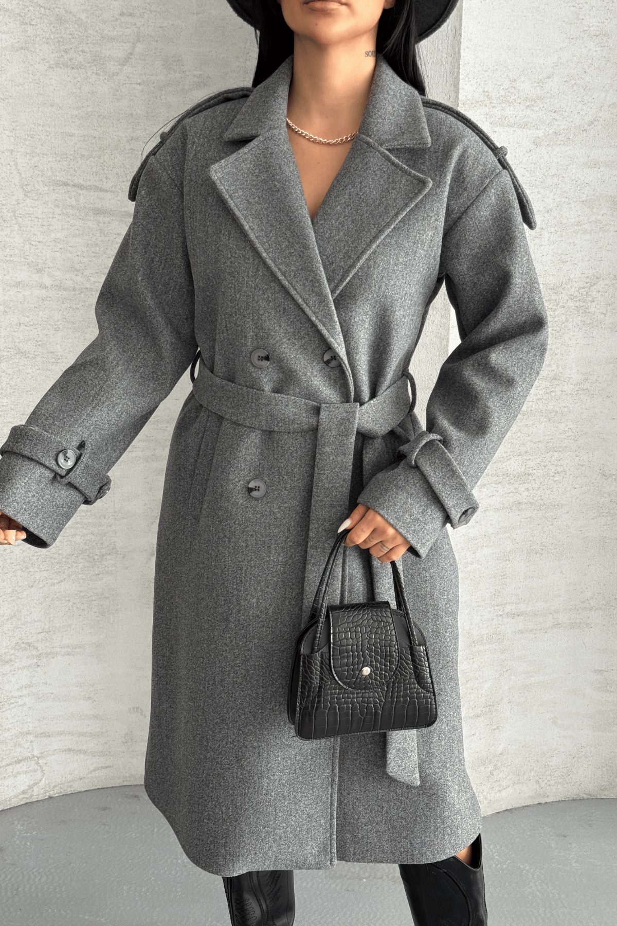 İthal Kaşe Kumaş Uzun Kaban - GRİ