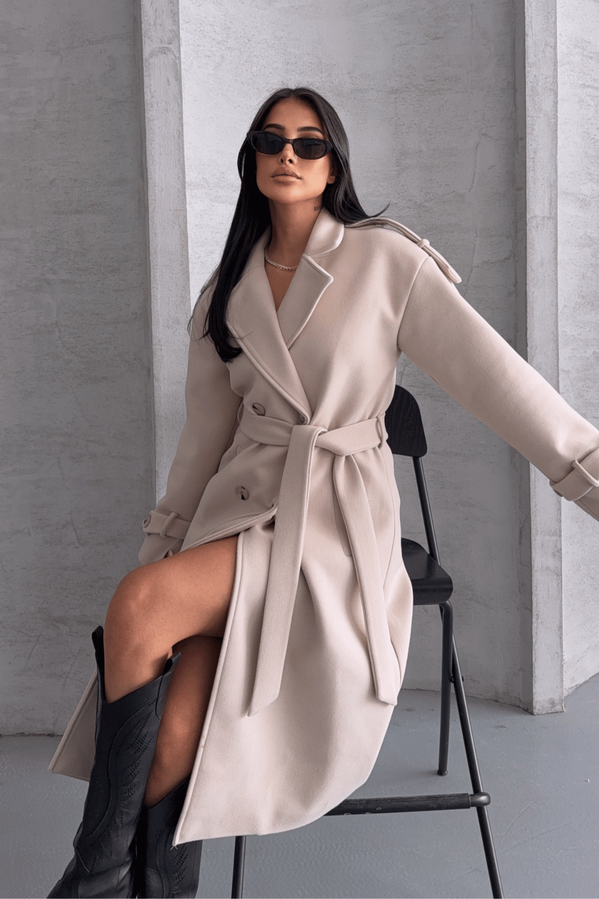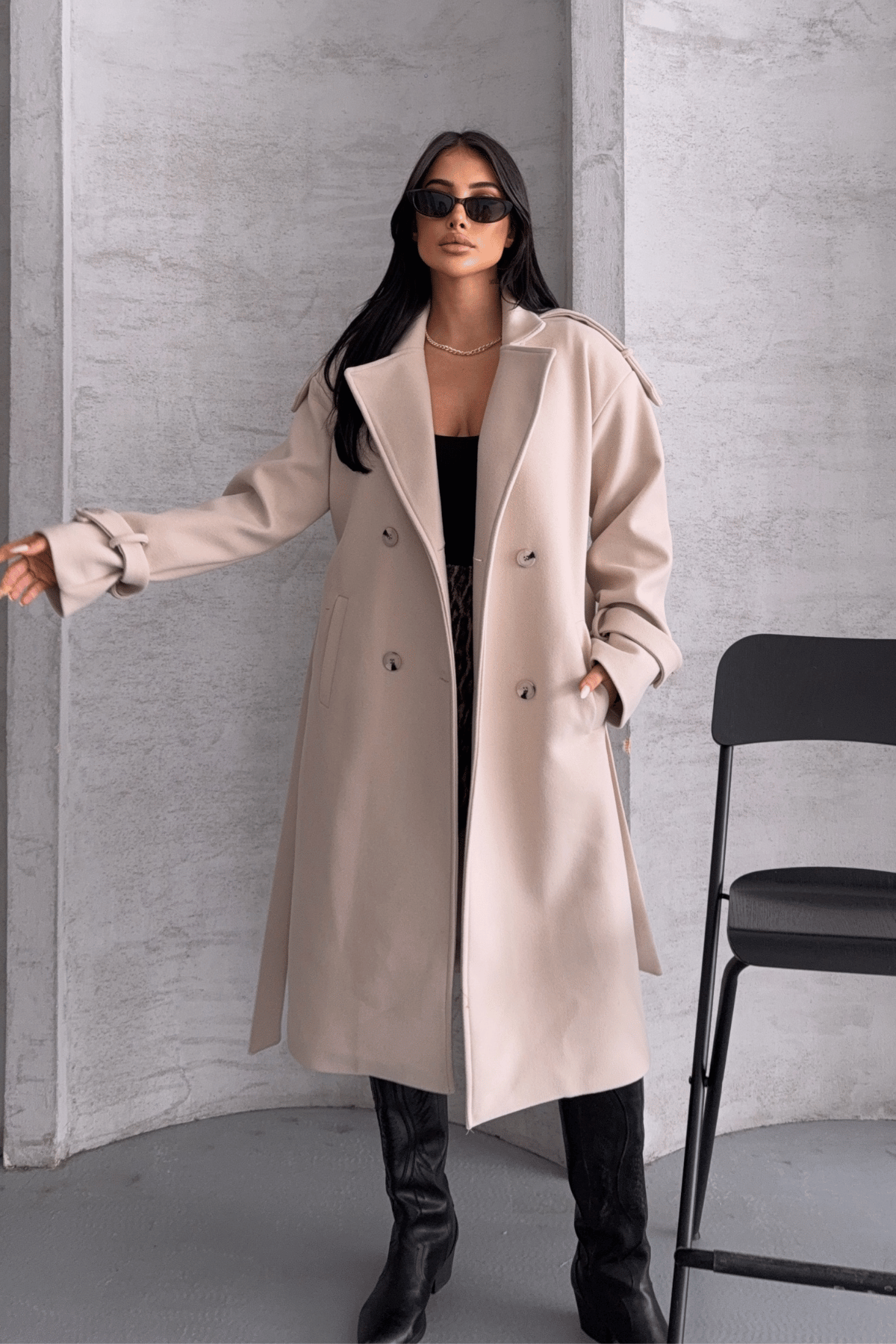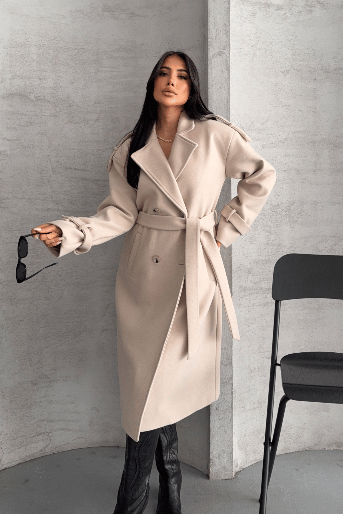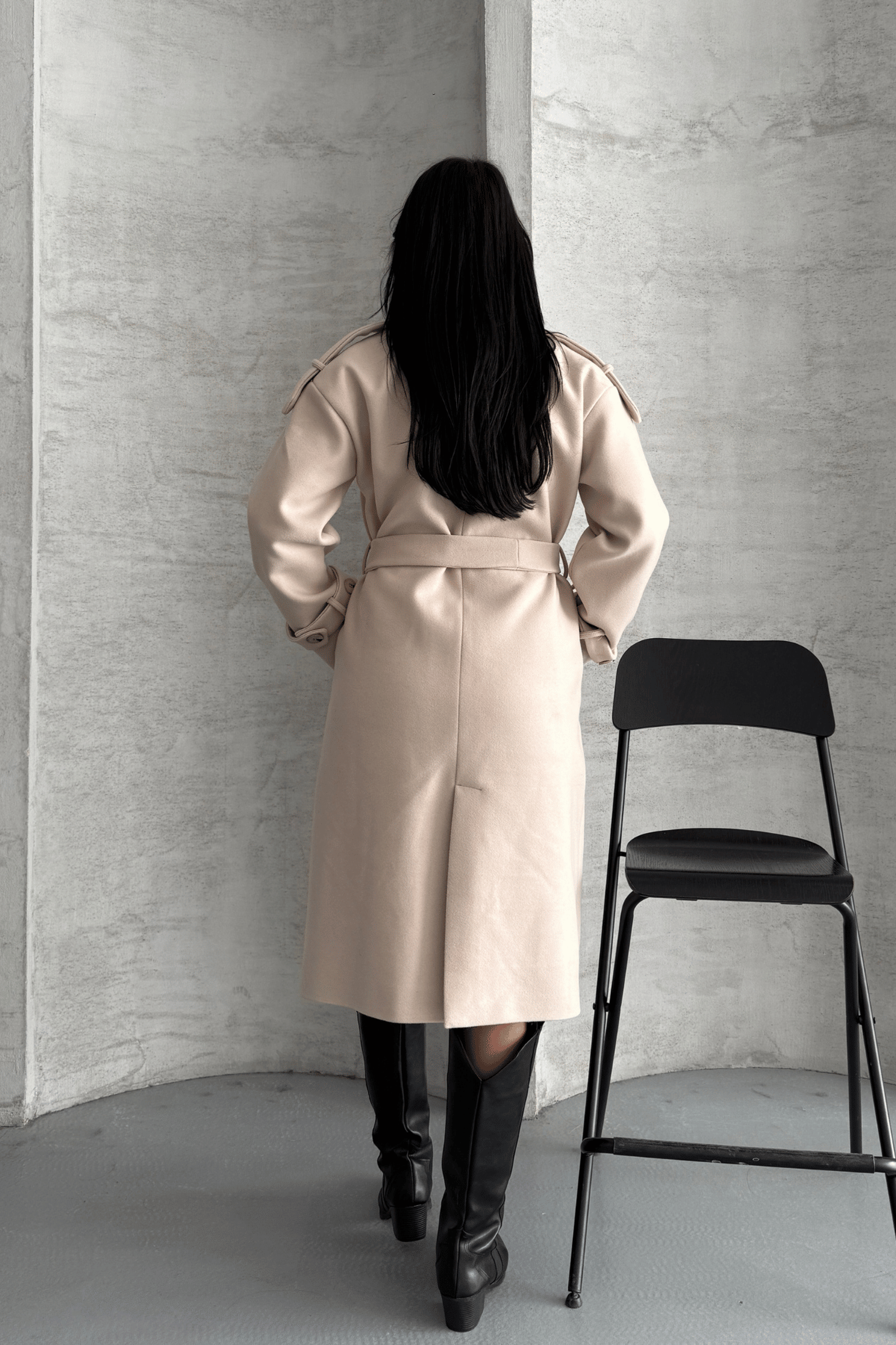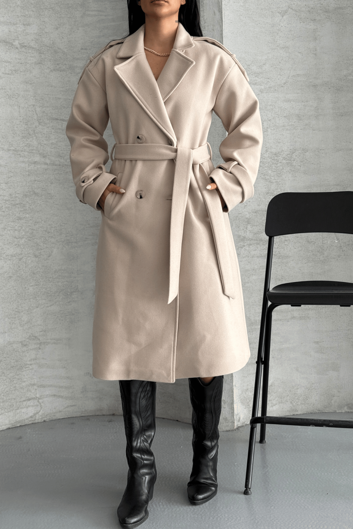 İthal Kaşe Kumaş Uzun Kaban - KREM