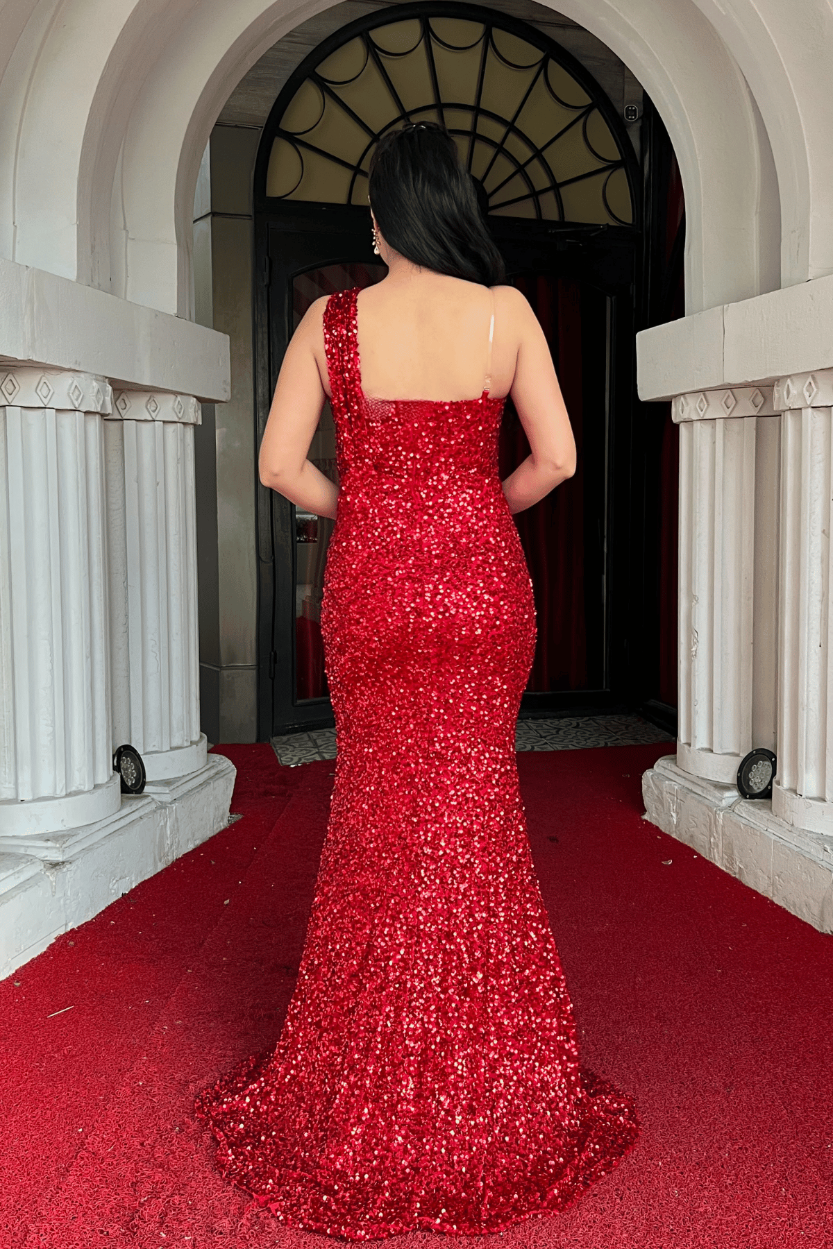 Payet Kumaş Tasarım Balık Elbise - KIRMIZI