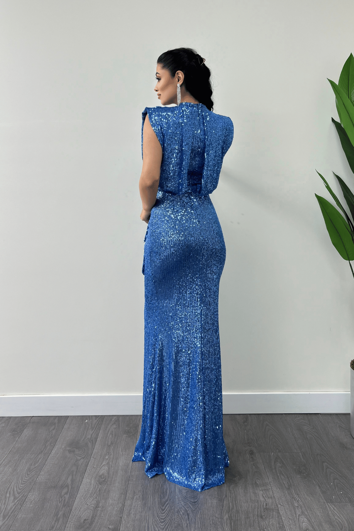 Pul Payet Kumaş Büzgü Detaylı Abiye Elbise - İNDİGO MAVİ (GYM-39941-İNDİGO MAVİ)