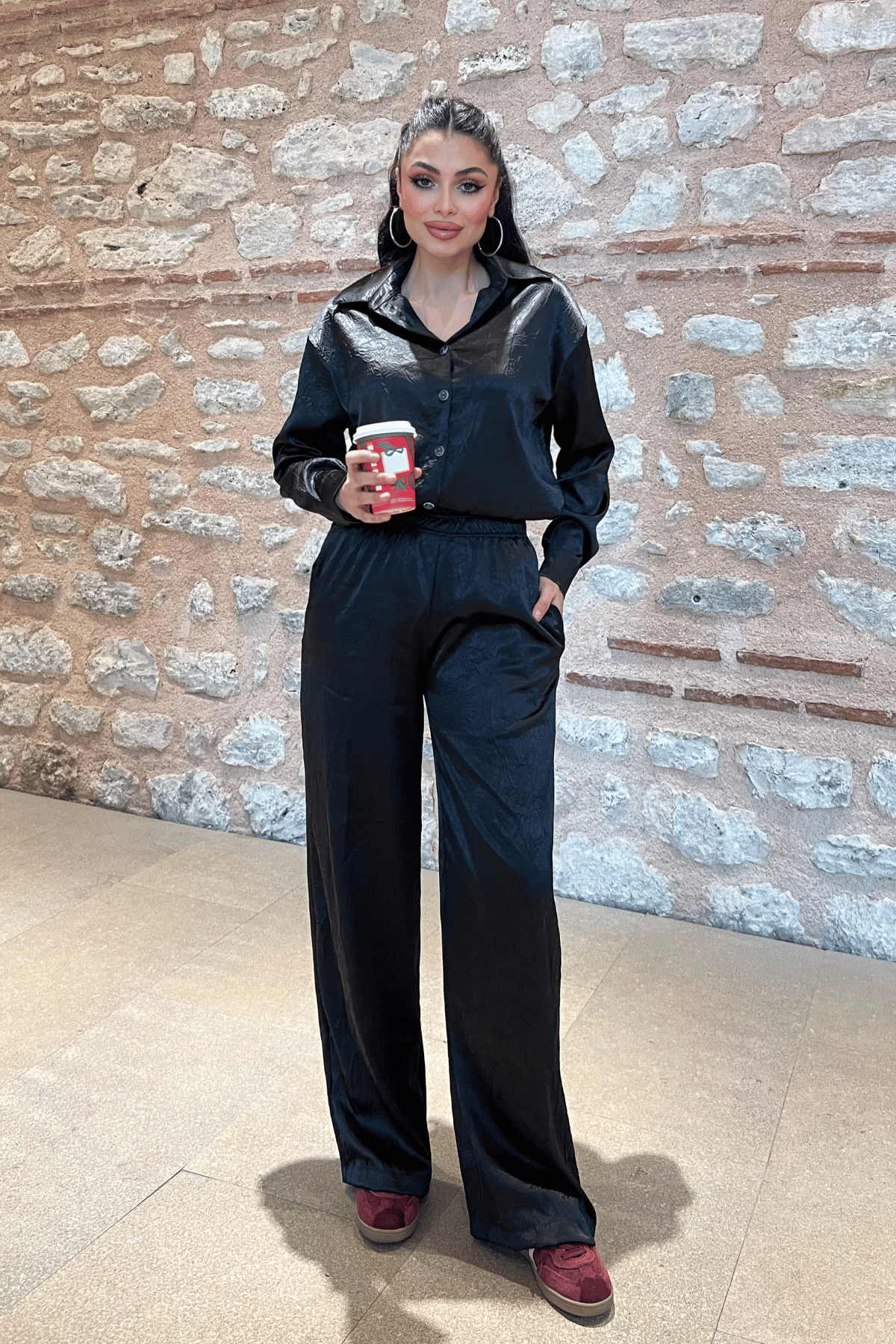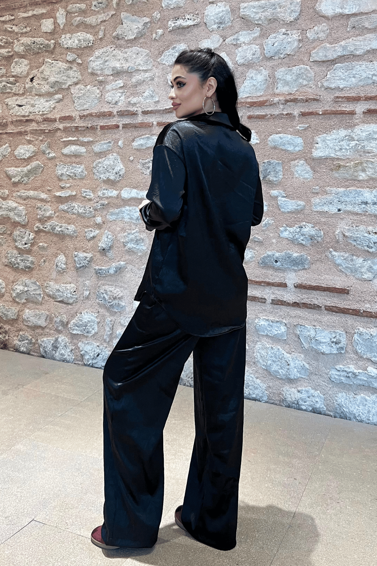 Saten Kumaş Takım - SİYAH (GYM-3038-SİYAH)