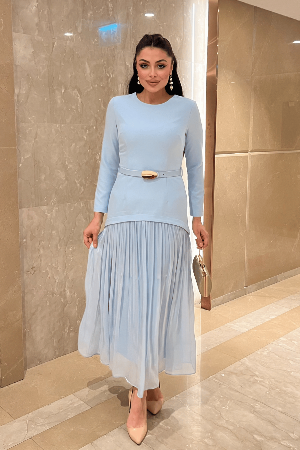 Üst Atlas Alt Şifon Kumaş Elbise - BEBE MAVİSİ (GYM-568-BEBE MAVİSİ)